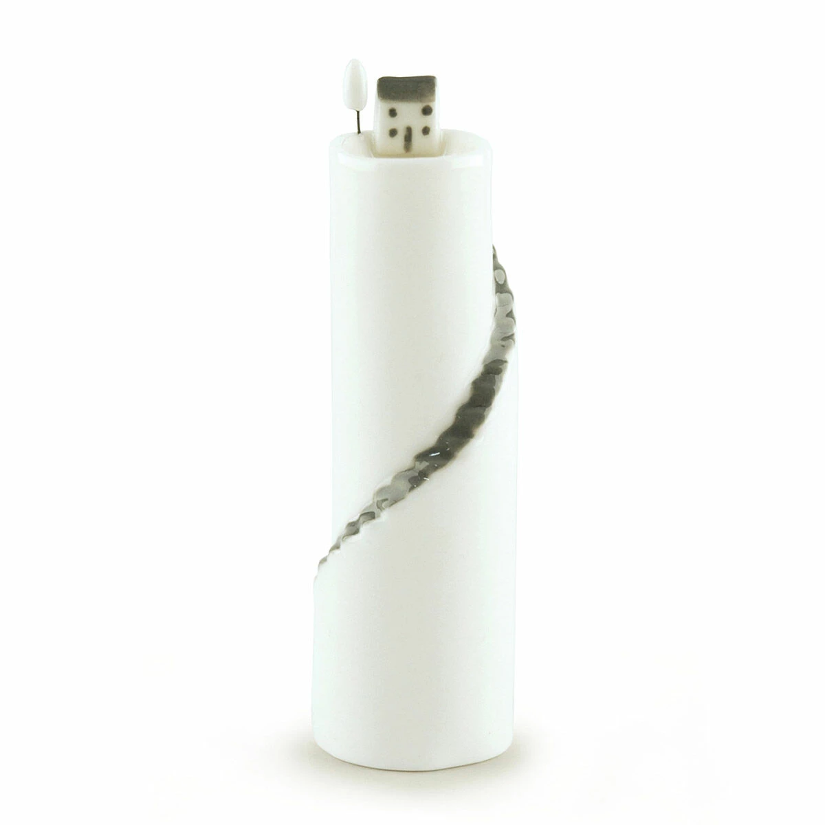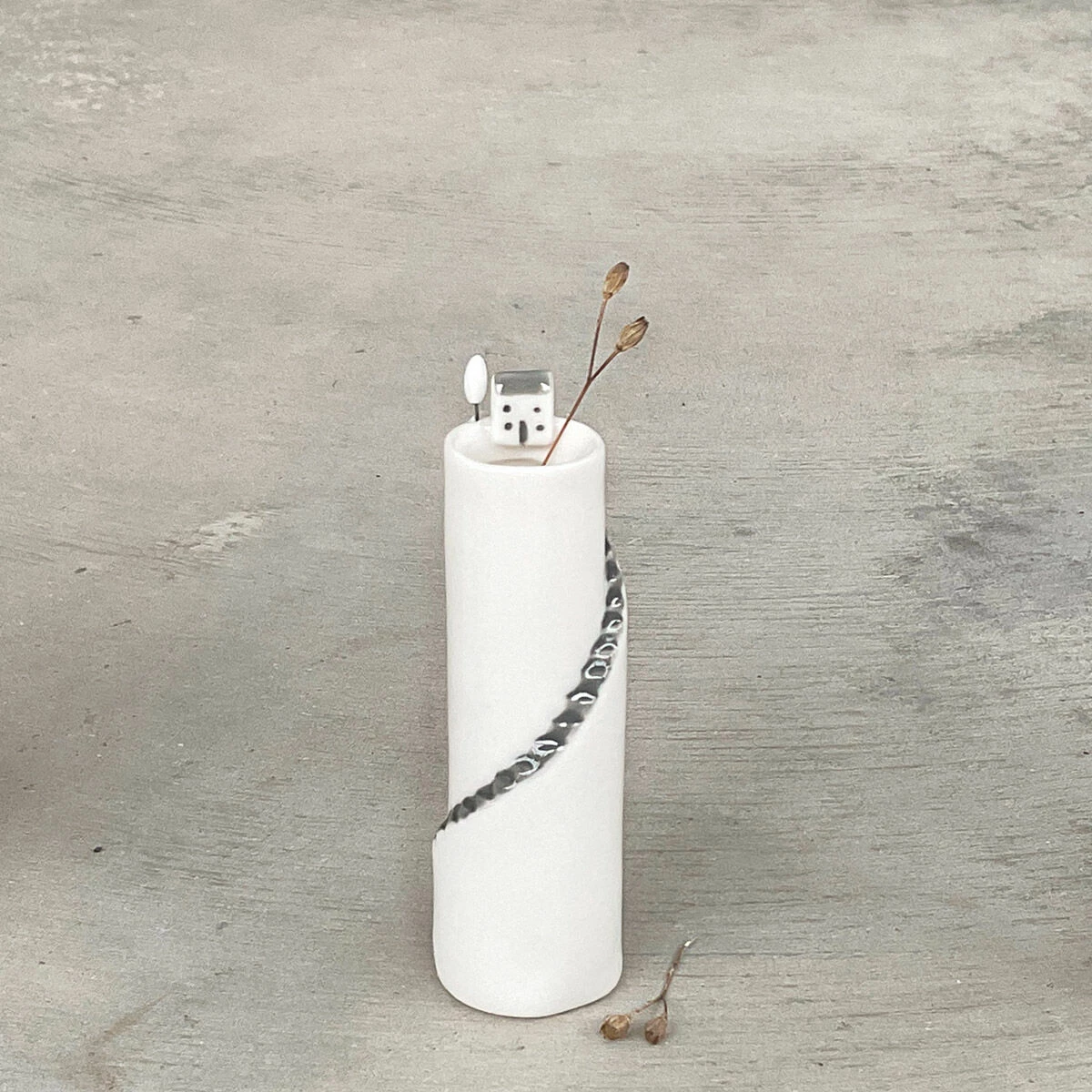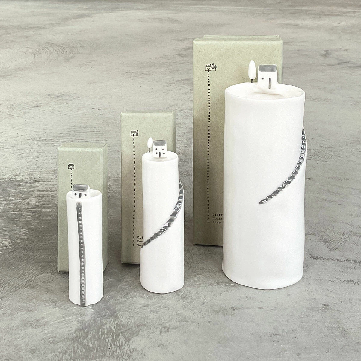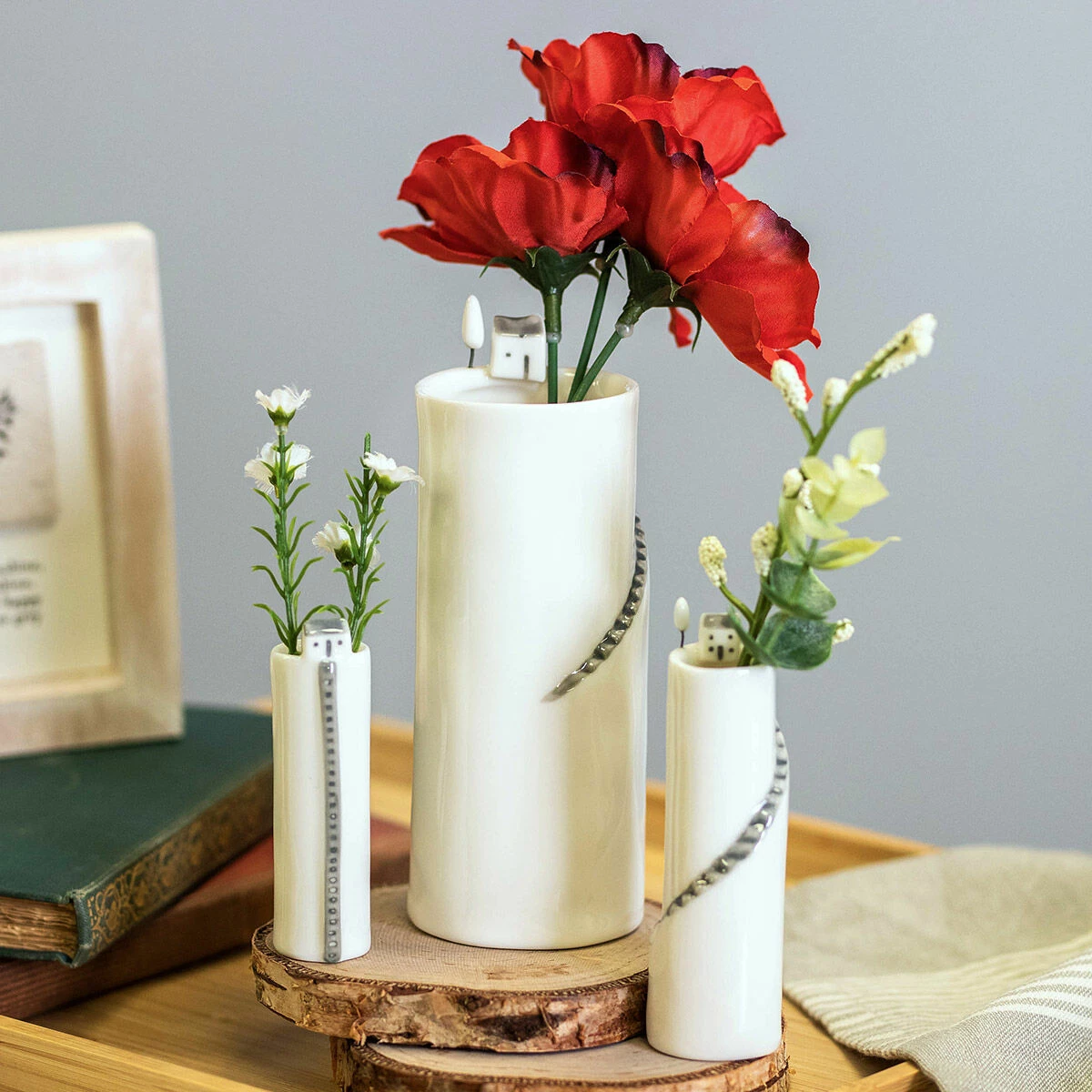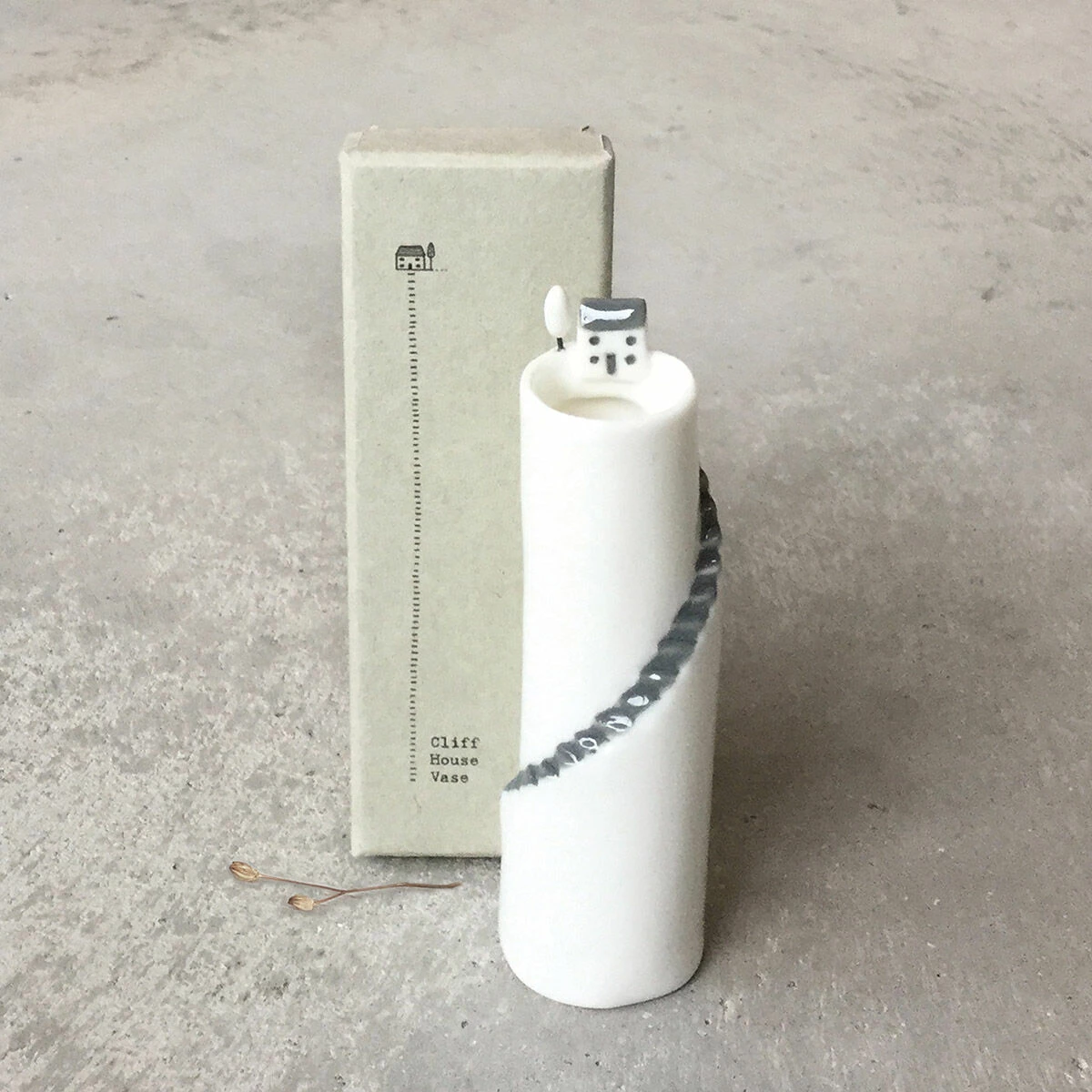 This vase features grey steps leading around the vase to the top where a small house and tree sit at the top. Perfect for placing a small bunch of flowers from the garden and displaying them proudly anywhere in your home.