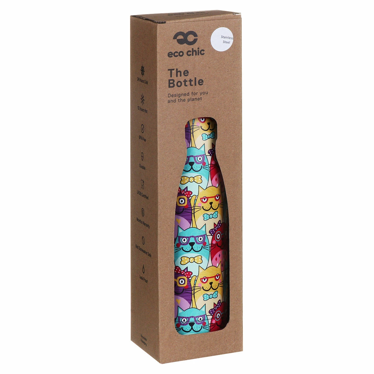 Eco Chic Cats with Glasses 500ml Thermal Drinks Bottle