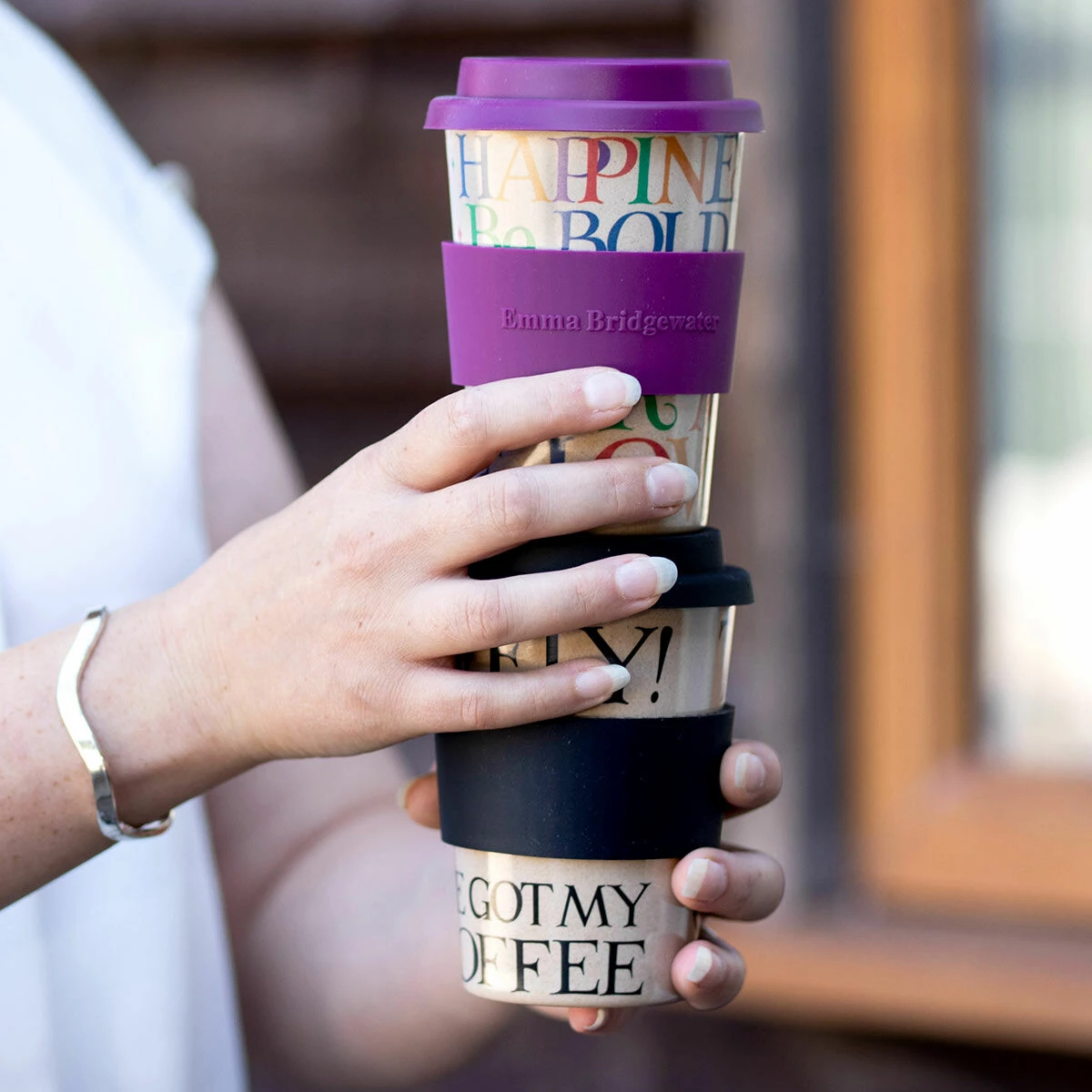 Elegant, simple and colourful typography features on this travel cup from Emma Bridgewater. Drink on the go and in style with this eco-friendly, biodegradable travel cup.