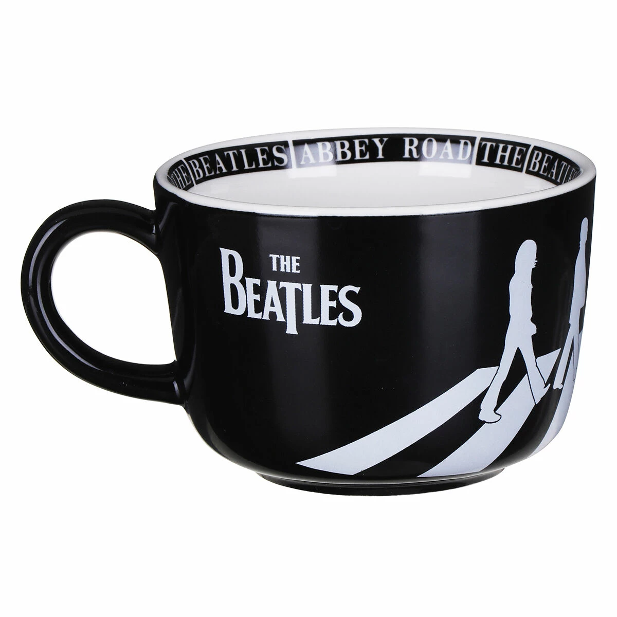 This stunning porcelain mug is decorated with the stylish ‘Abbey Road’ album cover from The Beatles in striking monochrome. The short wide mug is adorned with the words ‘The Beatles Abbey Road written inside the rim, whilst inside the base of the cup is half an apple, representing the corporation they set up, waiting to be seen once you finish your drink.