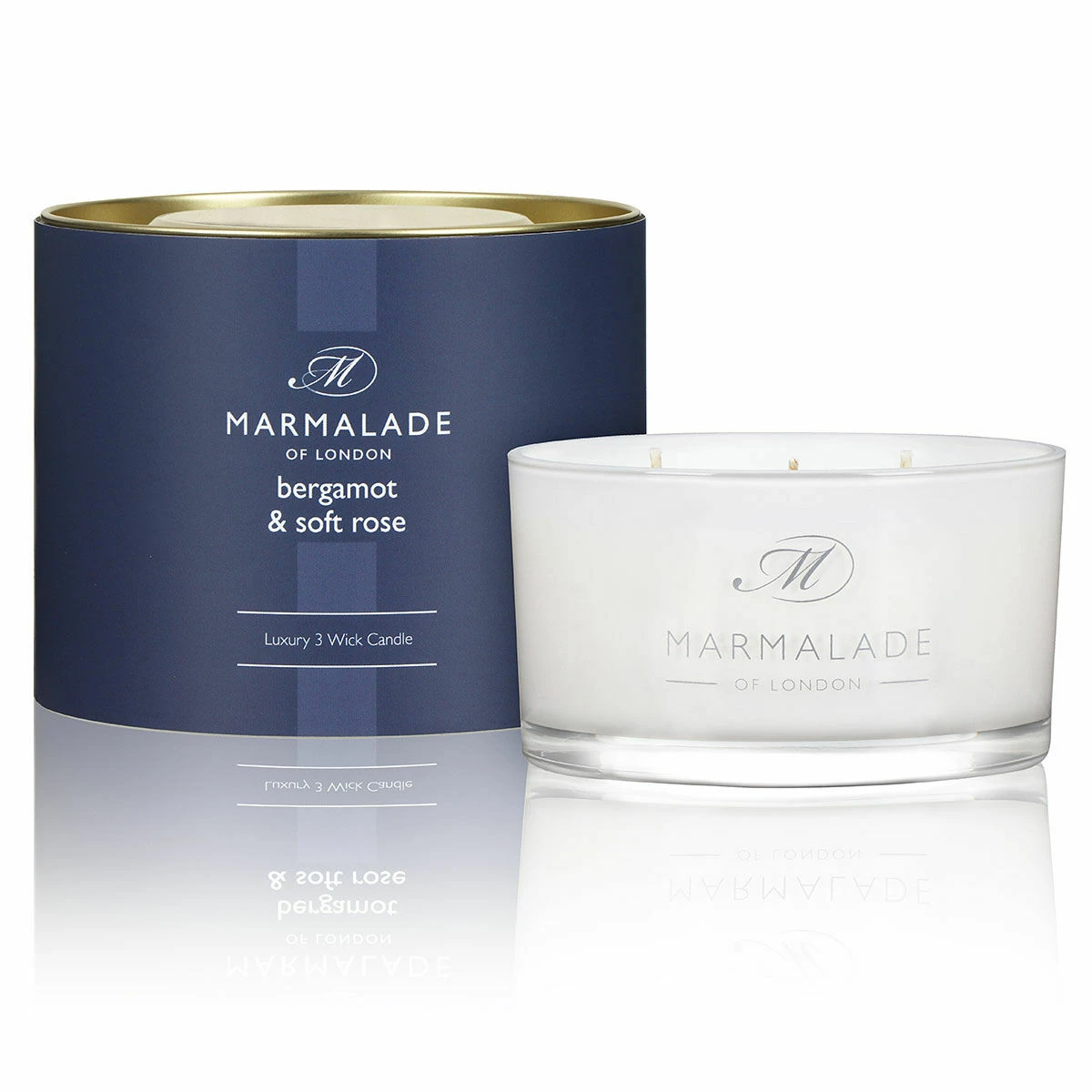 Marmalade of London Bergamot & Soft Rose 400g 3 Wick Glass Soy Candle