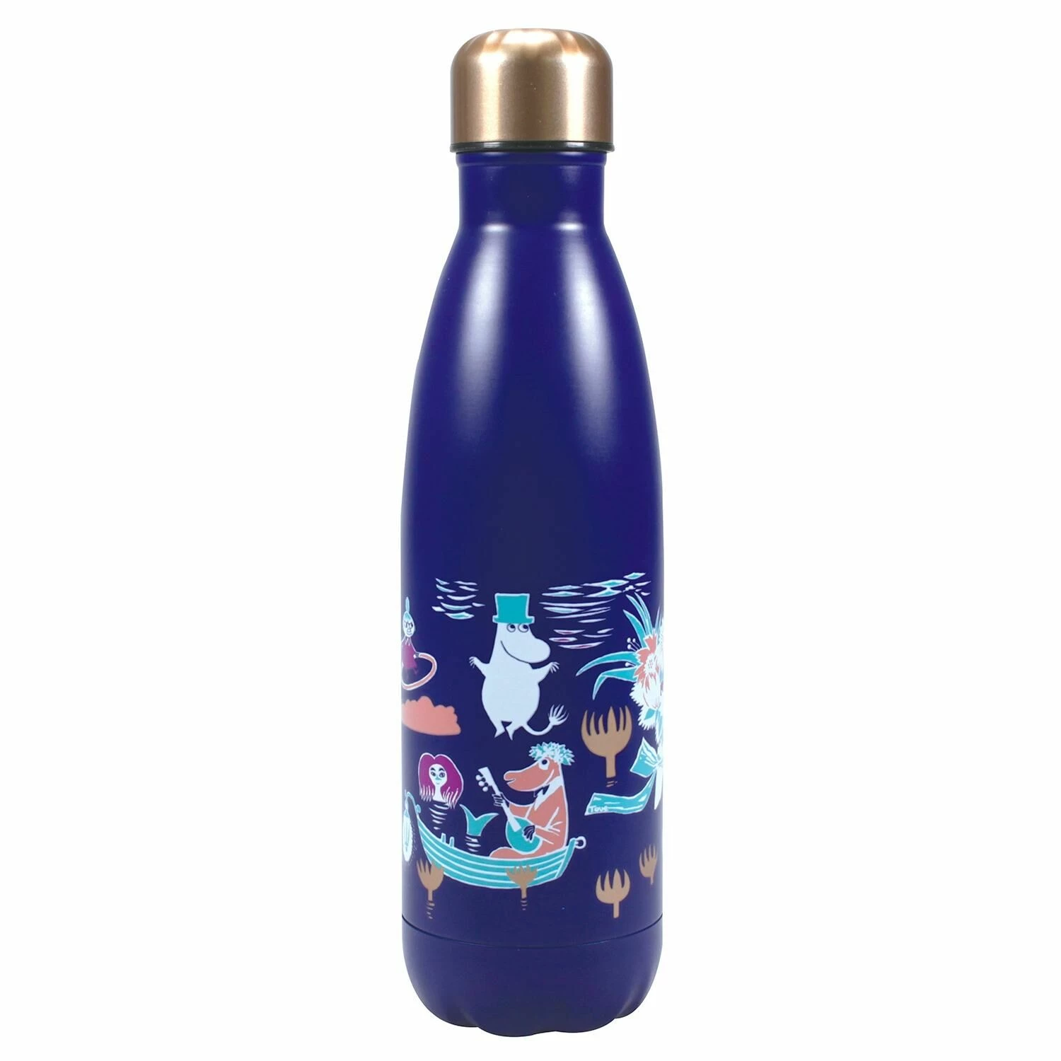 With a secure rose gold screw-top lid, this bottle holds 500ml of your favourite drink to help you stay hydrated on the go. A stunning indigo colour, the bottle is decoration with illustrations of a feisty Little My, a poised Moominpappa, a daydreaming Mymble perched in a bouquet of flowers and Moomintroll and Snorkmaiden dancing their hearts out.