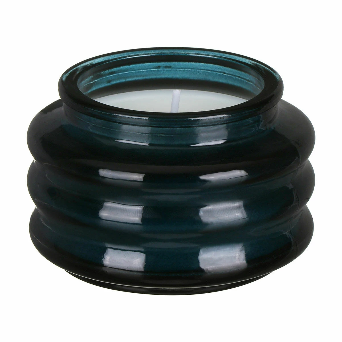 This beautiful candle is made from glass which has been shaped with a ripple effect. The deep navy glass vessel is complete with a matching lid. Once you have finished with your candle the glass pot is perfect for reusing for mini succulents or as a jewellery box.