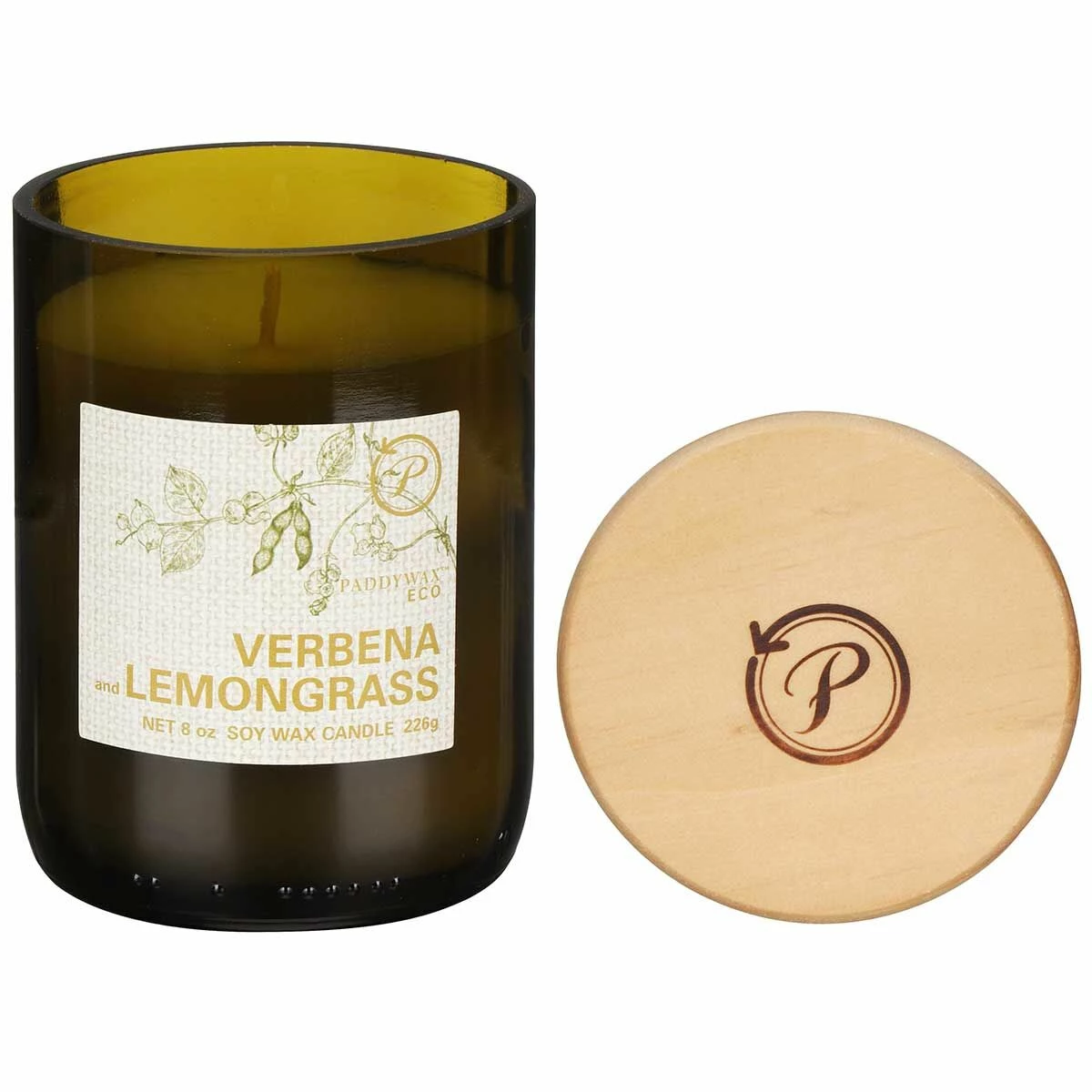 Paddywax Eco 226g Verbena and Lemongrass Green Recycled Glass Soy Candle