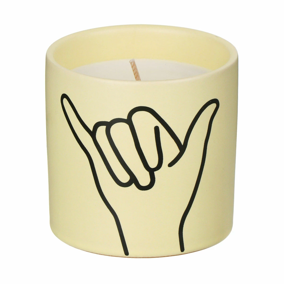 This funky candle features a stylish smooth yellow exterior, complete with an illustration of hand making the hang loose symbol. Once you have finished with your candle the ceramic pot is perfect for reusing for succulents, stationery or for any small trinkets! This delightful candle will look stunning on your shelf, mantlepiece or table. A Paddywax Impressions Candle makes the perfect present for a friend or relative.