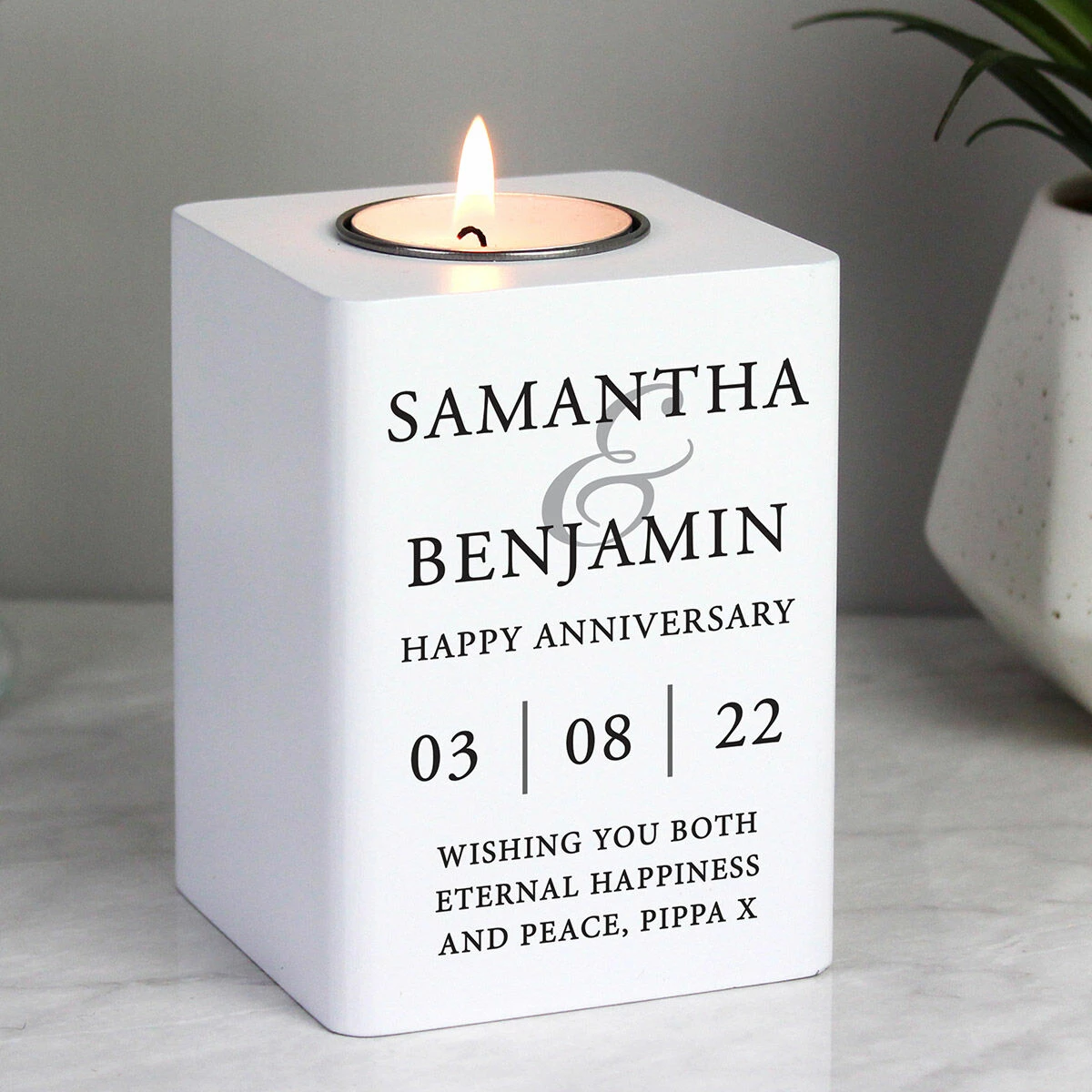 The tea light holder can be personalised with two names, a date, and message of your choice, for a unique touch which any recipient is sure to love!