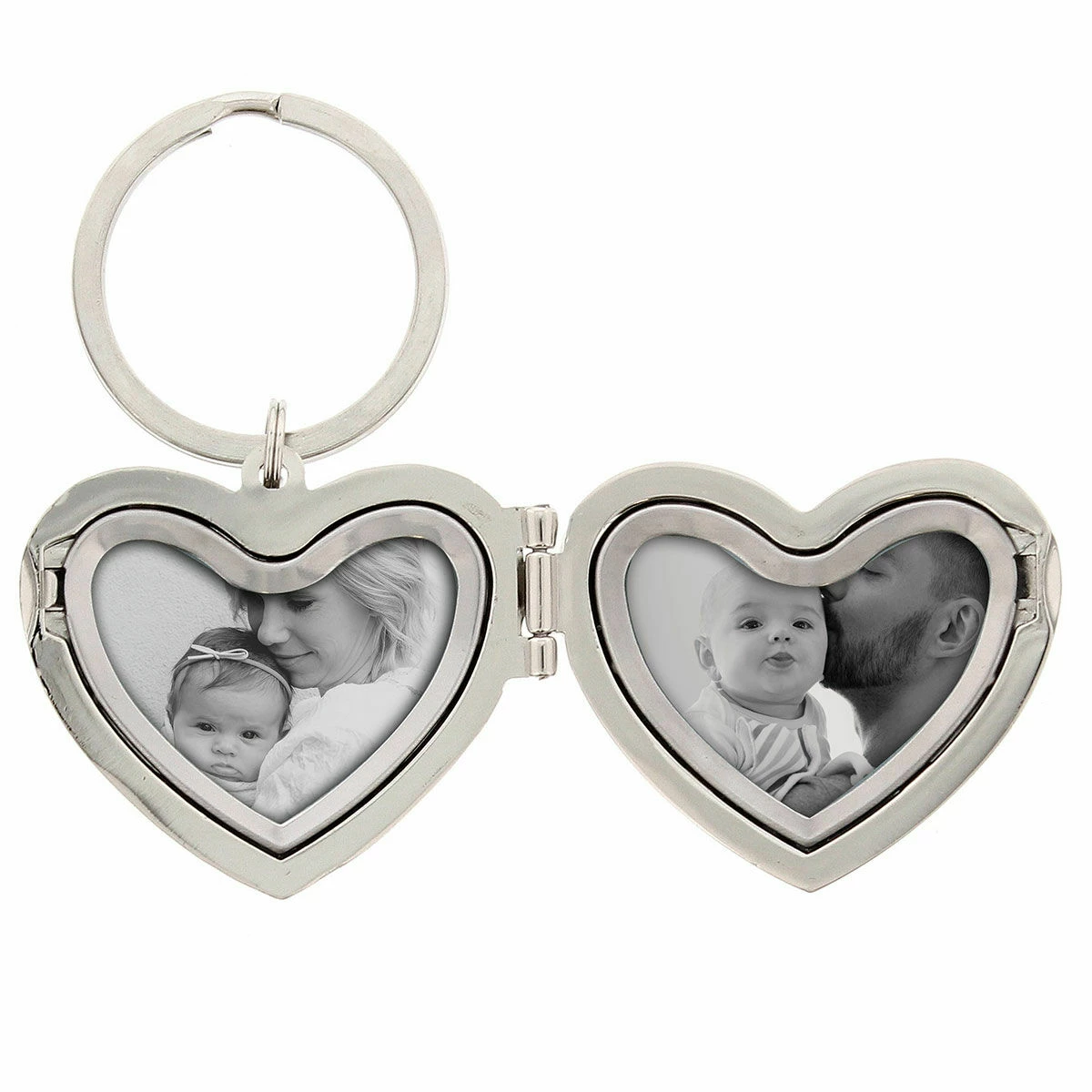This personalisable heart-shaped photo keyring is a lovely little gift for Mother’s Day! The gorgeous nickel plated heart pendant features text on the outside and space for two photos on the inside.