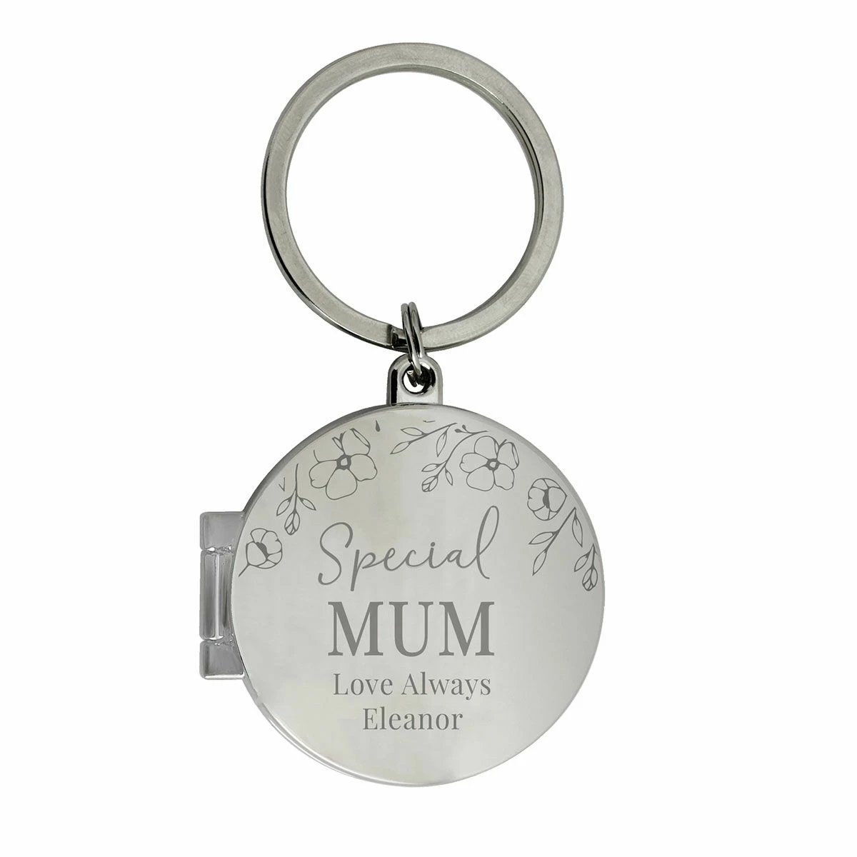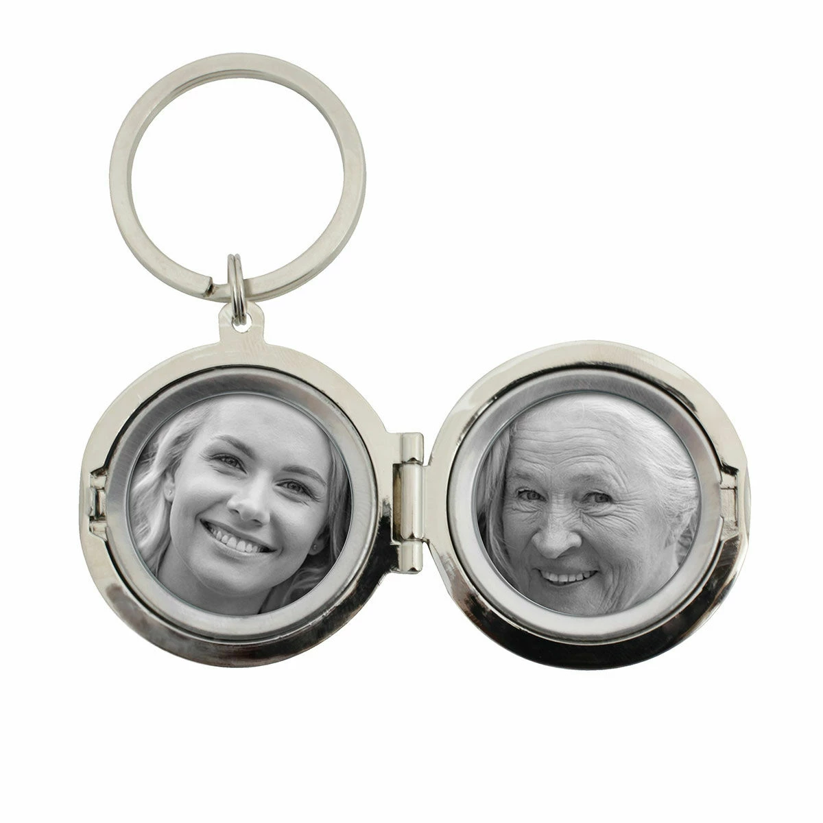 This personalised round photo keyring is a lovely little gift for Mother’s Day! The gorgeous silver finished pendant features text on the outside and space for two photos on the inside.