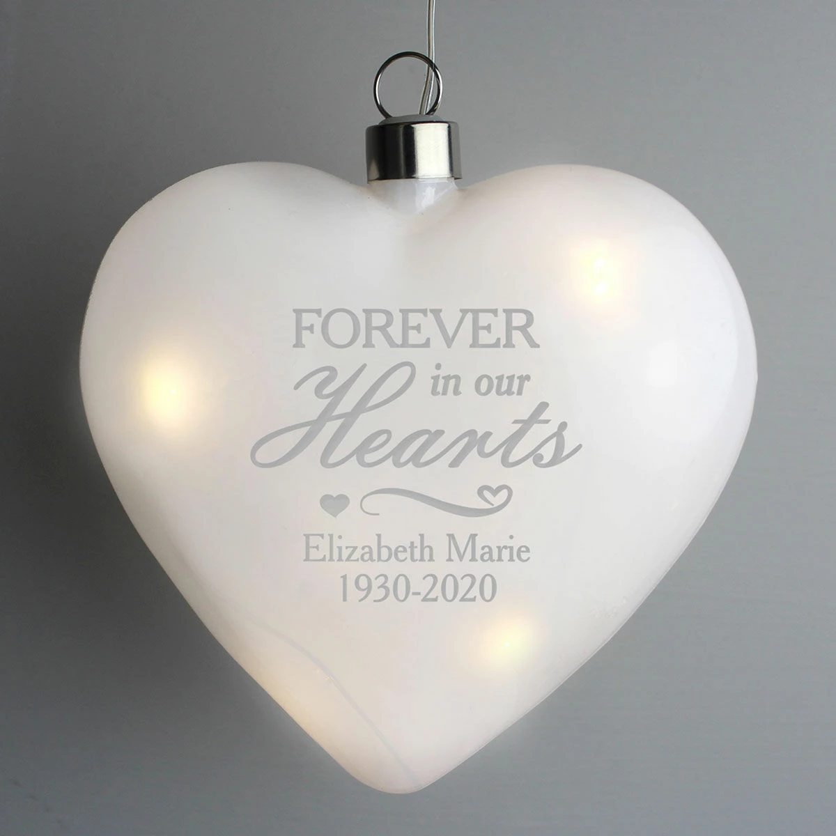 Personalised ‘Forever In Our Hearts’ LED Hanging Glass Heart