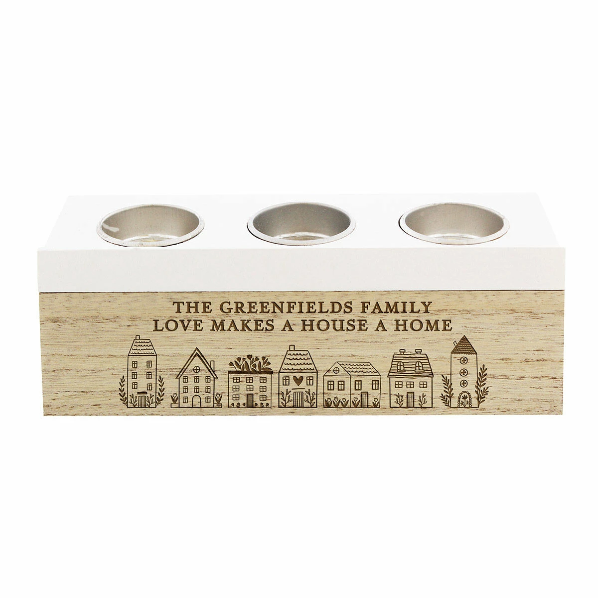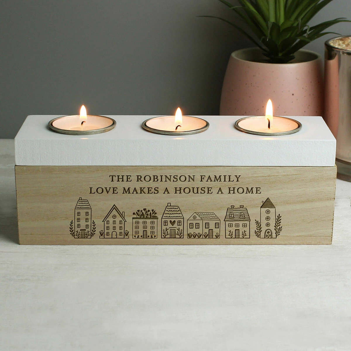 Personalised HOME Triple Tea Light Box