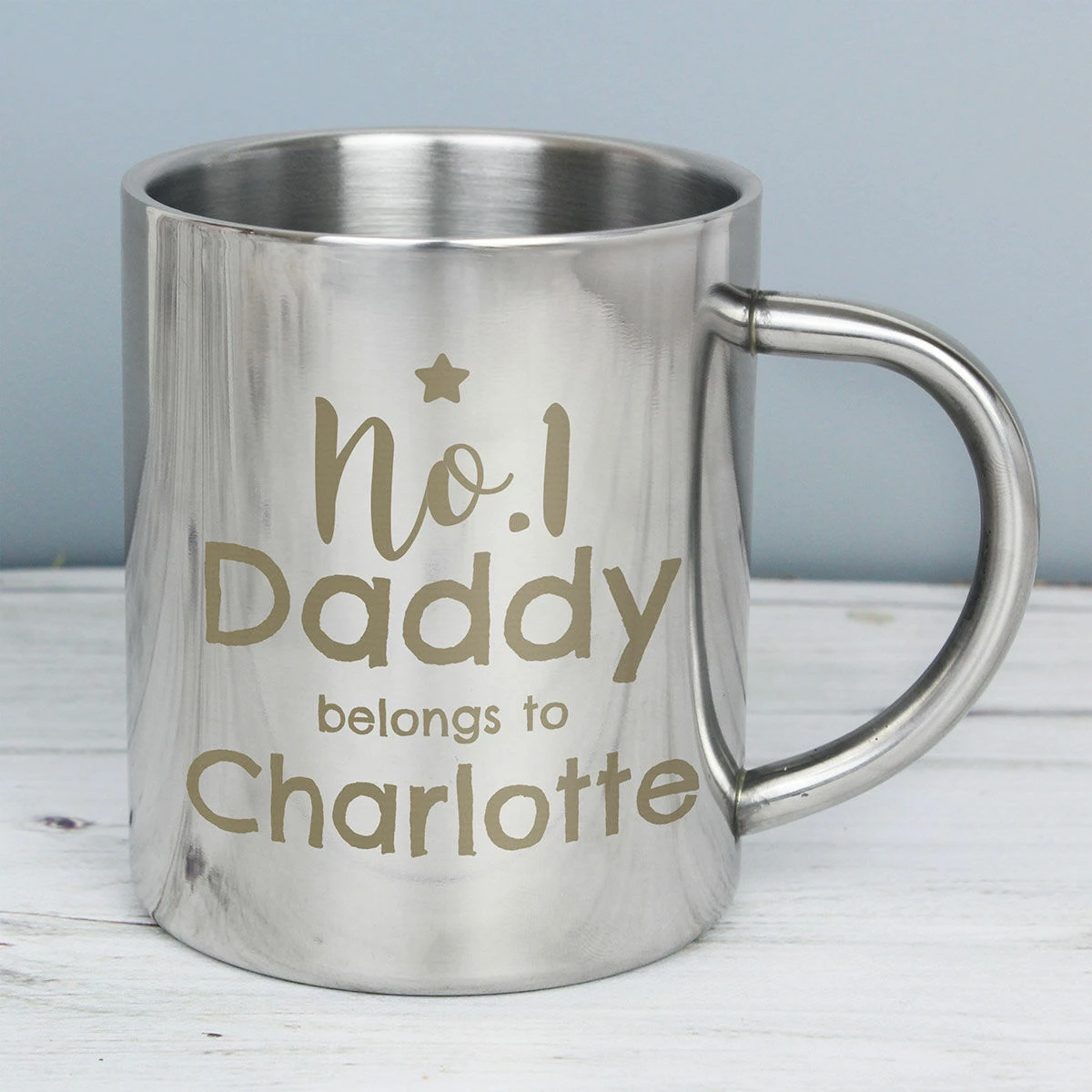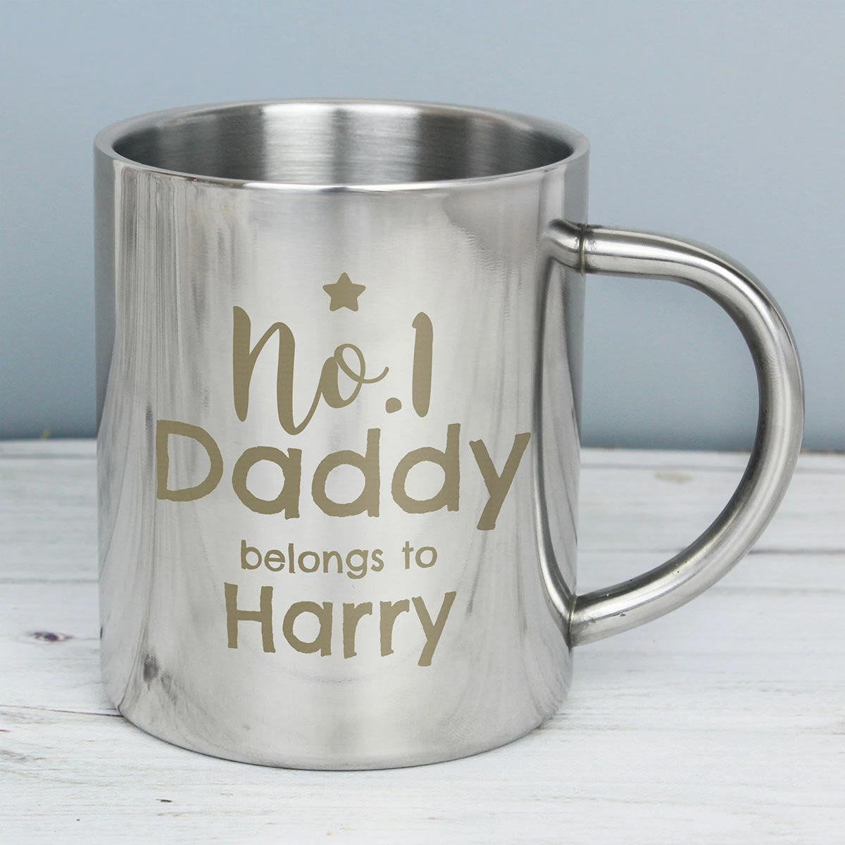 Create the perfect gift for birthdays, Christmas, or Father’s Day with this personalised ‘No.1 Daddy’ Stainless Steel Mug.