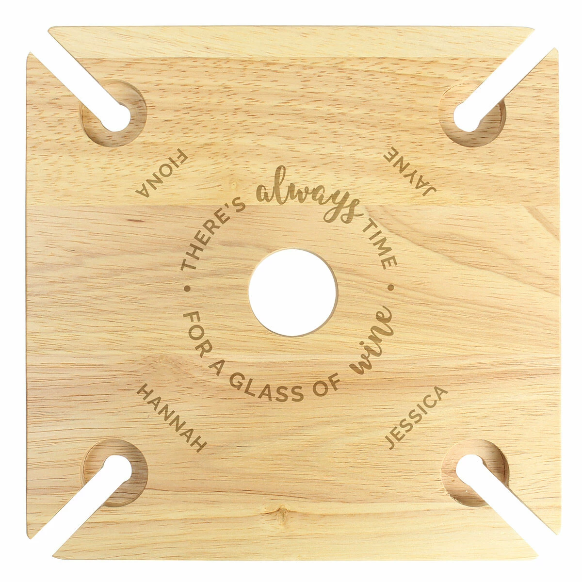 Personalised ‘Time For Wine’ Four Wine Glass Holder & Bottle Holder