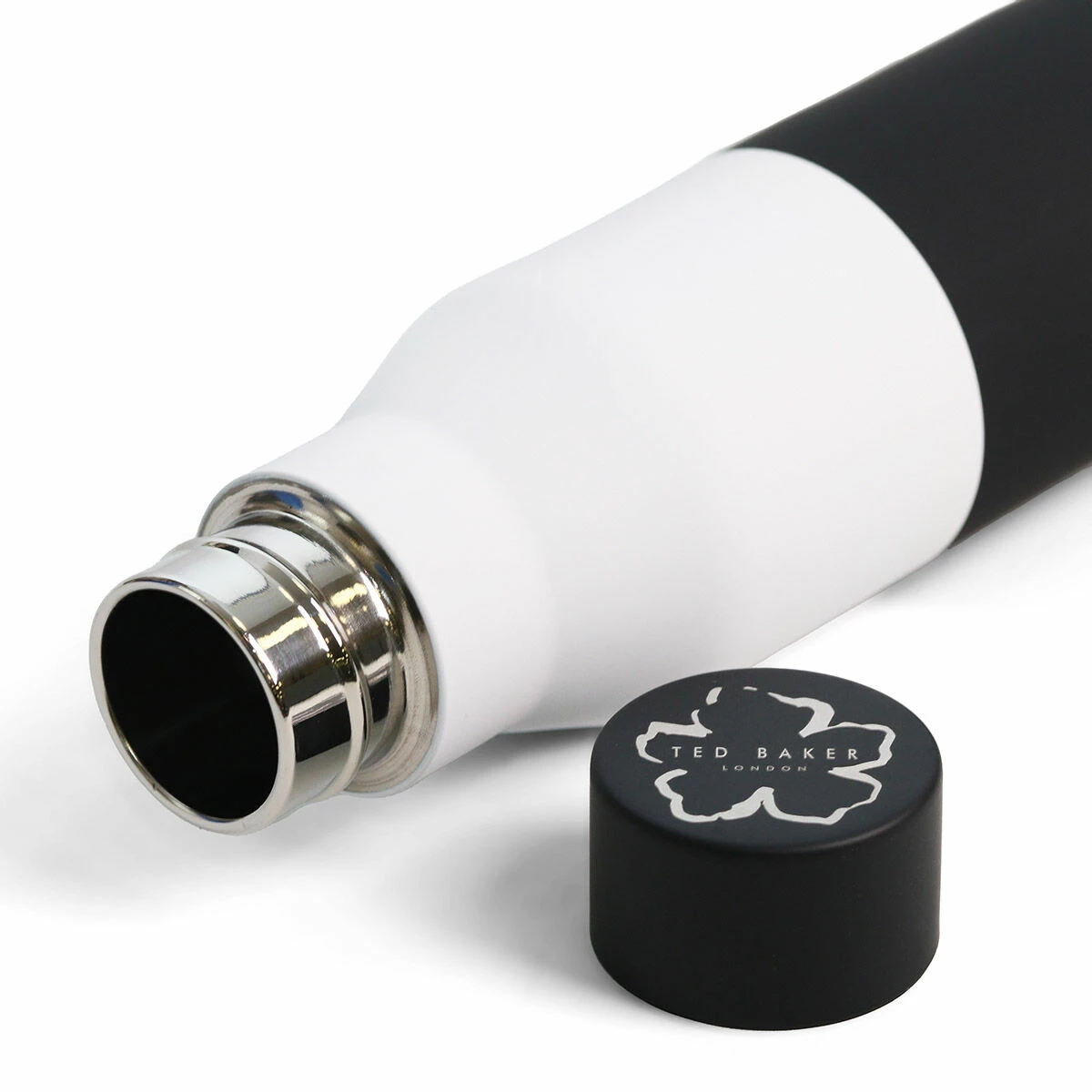 This sleek bottle is decorated a stylish two-tone design with contrasting shades of black and white. The bottle has a black lid featuring an abstract flower and the Ted Baker logo, with a leak-proof screw top ensuring that your drinks are kept safe and secure.
