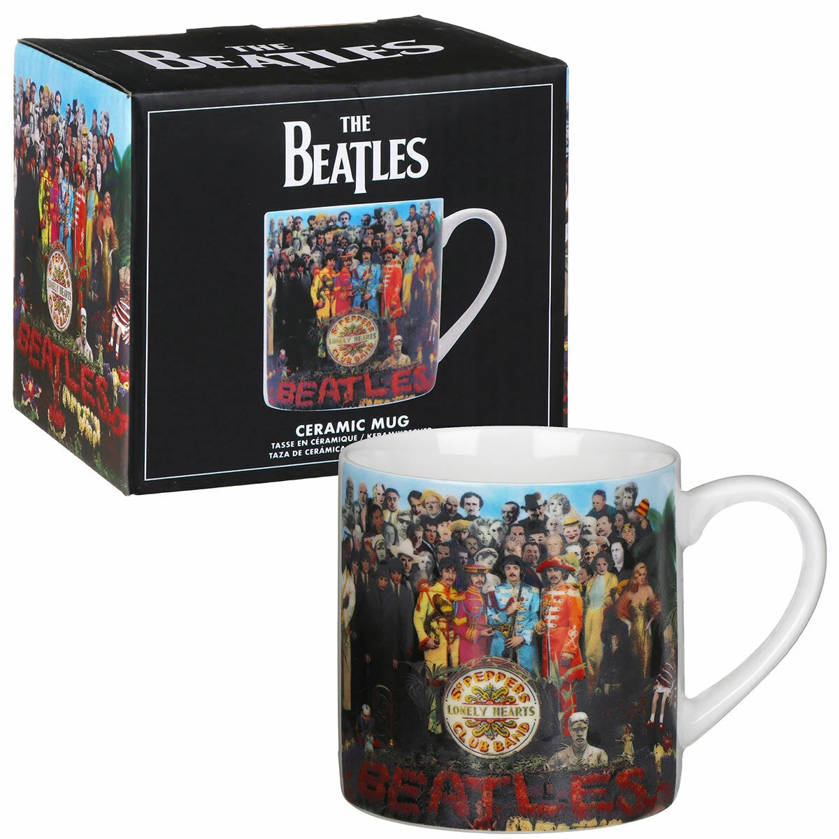 This stunning porcelain mug is decorated with the iconic Sergeant Pepper Lonely Hearts Club Band album cover, complete with white ceramic handle. This ceramic mug is perfect for tea, coffee and hot chocolate drinkers!
