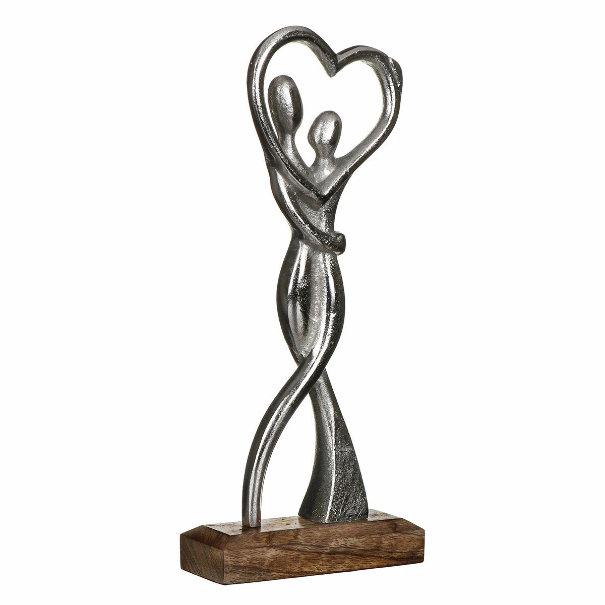 Made from metal, this decoration features a couple lovingly dancing with one another, they are holding hands and their arms make a beautiful heart shape as they show their affection for each other Sat on a gorgeous wooden base which contrasts the shiny silver perfectly it is complete with black felt on the bottom to ensure your surfaces don’t get damaged.