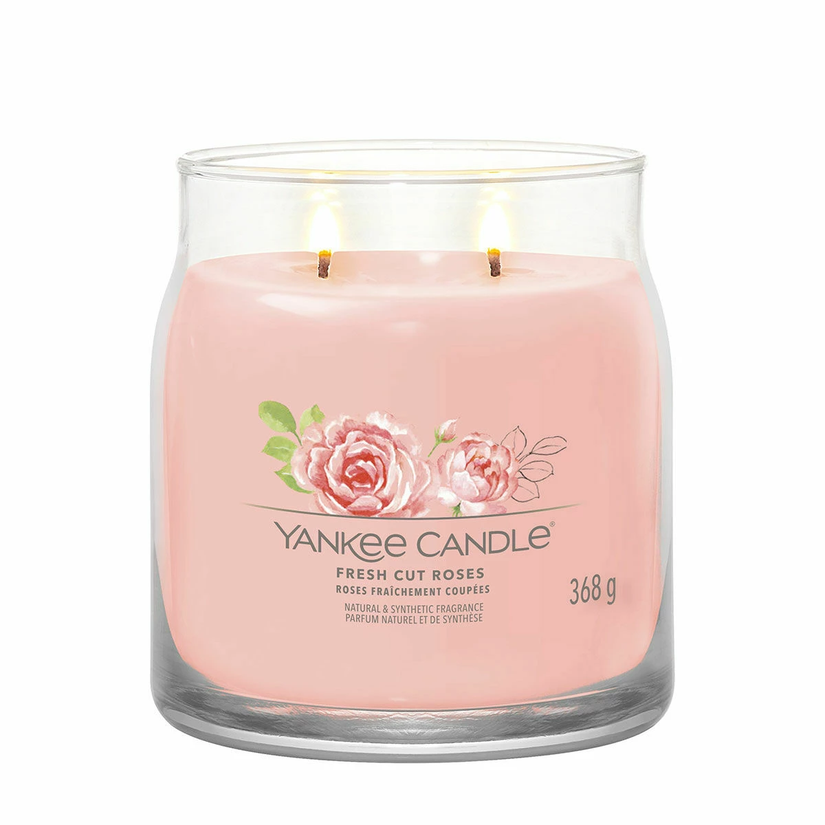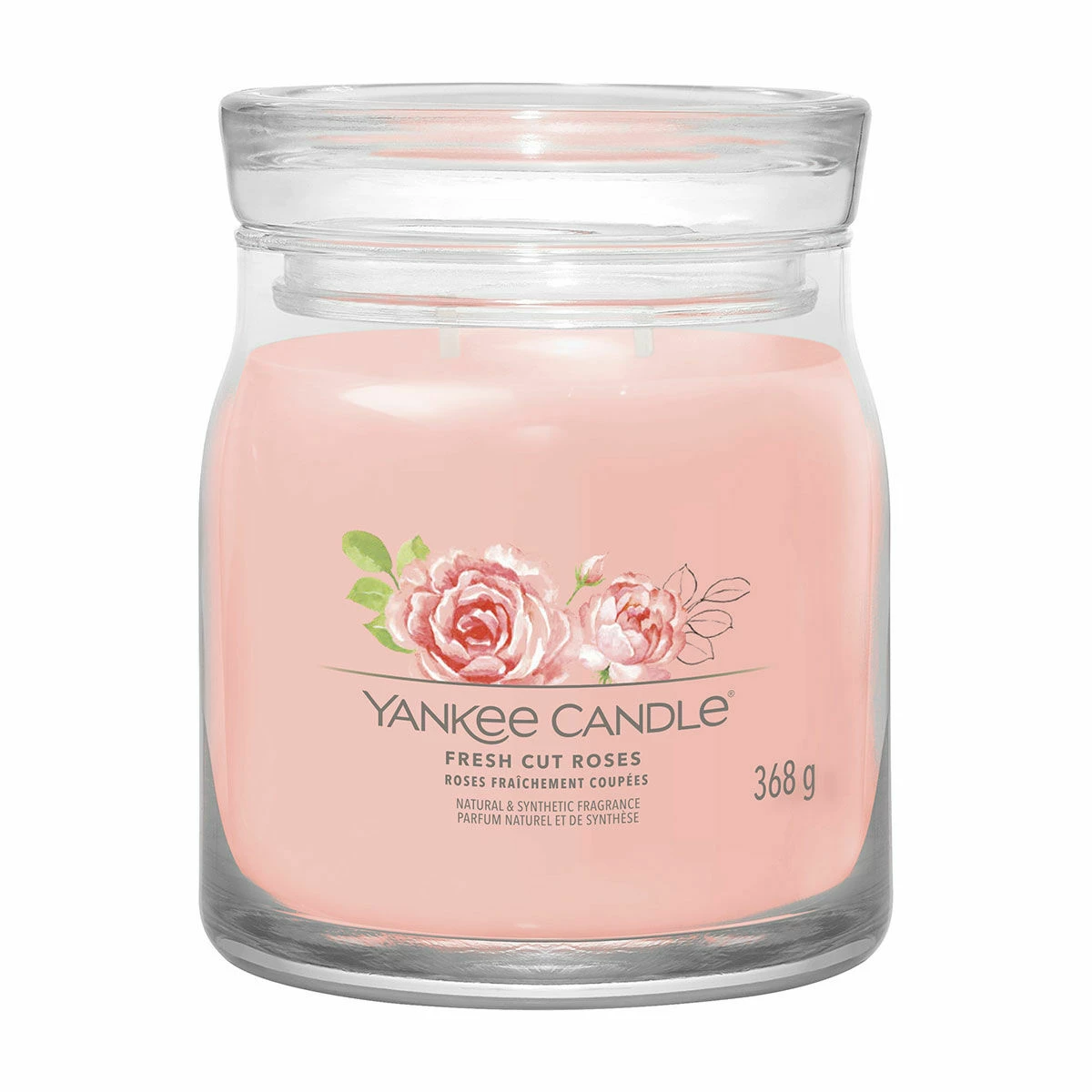 Enjoy the wonderful Fresh Cut Roses fragrance in the wonderful Signature Medium Jar Candle, a sleek glass vessel that compliments the fragrance and will look wonderful in your home. The wonderful fragrance from Yankee Candle brings to life an intoxicating English garden of fragrant heirloom roses, freshly cut and brimming with beautiful aromas.